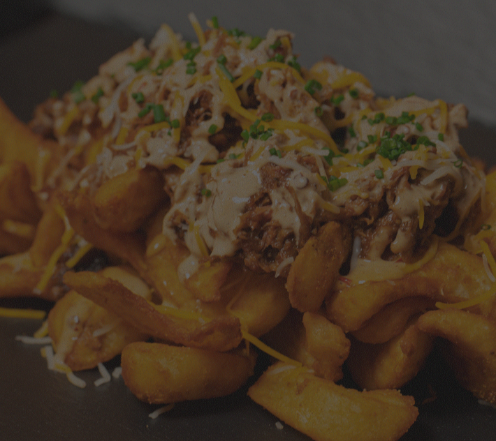 Sidewinder fries topped with pulled pork, cheese, and chipotle ranch
