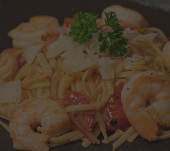 6 jumbo shrimp, cherry tomatoes, red onion, lemon herb butter sauce, linguine, Parmesan, parsley